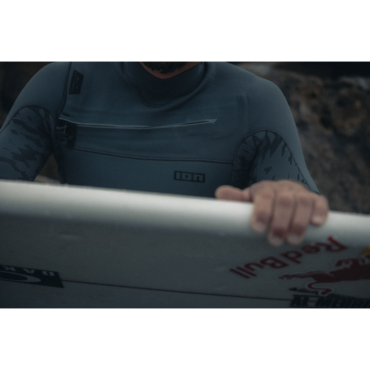 Hot_Stuff 3.0:Hot_Stuff 3.0 biedt een nog zachter draaggevoel dankzij grotere lussen die meer lucht insluiten en zo de warmte-isolatie verbeteren. Gemaakt van gerecycled nylon is het de meest rekbare thermovoering in het hele ION-assortiment.;Silk_Stuff:Zachte voering van gerecyclede materialen zorgt voor een prettig gevoel op de huid. Ondanks het knusse uiterlijk overtuigt het met compromisloze prestaties en uitzonderlijke flexibiliteit aan de binnenkant.;Maki_Tape 2.0:Super elastische neopreen tape versterkt de naden op sterk belaste plekken voor een langere levensduur van je wetsuit.;Sweep_Cut:Naadloos schouderontwerp voor maximale peddelprestaties en bewegingsvrijheid.;Cordlock:De zachte koordsluiting maakt het mogelijk om de frontzip met één hand te verstellen. Dankzij het minimalistische ontwerp zul je de sluiting nauwelijks merken.;Einhand-Reißverschluss:Opent naar links, sluit naar rechts. Kan met één hand geopend en gesloten worden. Vergrendelt met een drukknop.;Vervangbare tunnelkoord:Het koord dient om het pak bij de schouder strakker te maken. De hoge belasting van dit kleine detail kan onvermijdelijke schade veroorzaken. Het koord is eenvoudig te vervangen, zodat je de levensduur van je wetsuit gemakkelijk kunt verlengen!;Seam_Reinforcement:Alle spanningspunten zijn versterkt met Melco-tape om een langere levensduur van de naden te garanderen.;Glued Blind Stitch:Geavanceerde techniek waarbij het neopreen eerst wordt gelijmd en vervolgens met een gebogen naald slechts tot de helft wordt doorgestoken. Hierdoor wordt waterinfiltratie via gaten in het neopreen voorkomen.;Water Defender Leg:Deze gepatenteerde innovatie voorkomt dat beenopeningen door waterinfiltratie naar boven klappen. Twee verwisselbare inzetstukken aan de binnenkant van elk been zorgen ervoor dat water direct kan weglopen – voor aangename warmte en optimaal draagcomfort.;Flat_Lock:Neopreenpanelen worden over elkaar gelegd om aan elkaar genaaid te worden. Deze methode maakt een zeer duurzame en sterke, maar toch flexibele naad mogelijk.