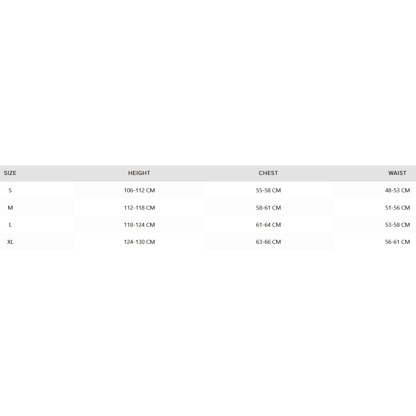Größentabelle